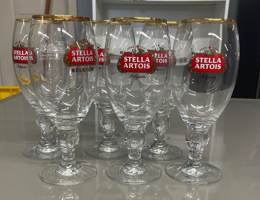 Stella Artois Belgium Ritzenhoff Gold Rim 40CL Beer Pub Glasses Holiday Mancave SET OF 19 V-32