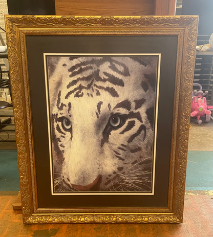 Large Fancy Gold Framed White Tiger Face