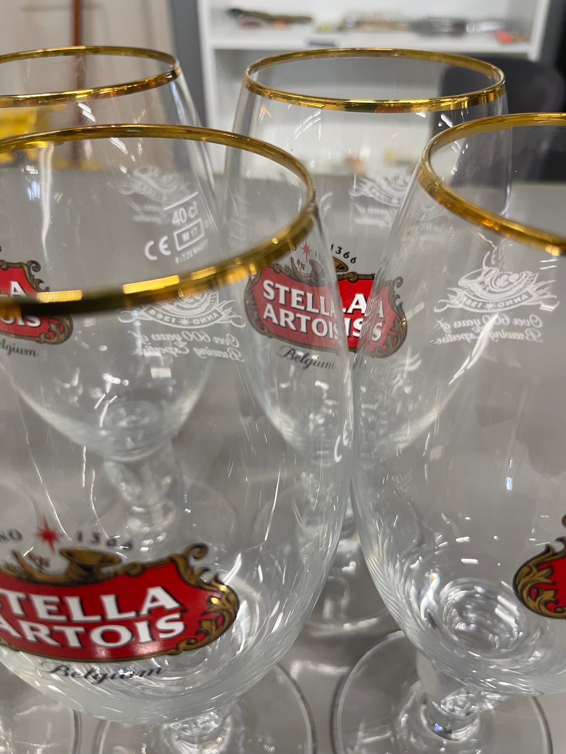 Stella Artois Belgium Ritzenhoff Gold Rim 40CL Beer Pub Glasses Holiday Mancave SET OF 19 V-32
